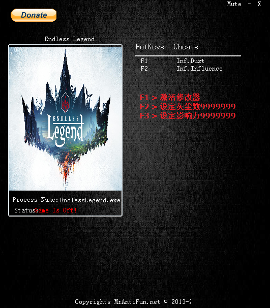 无尽的传说两项修改器让你的影响力变的非常大,让你的灰尘数非常的多,还在想什么赶紧下载吧。