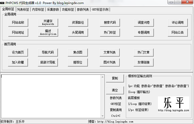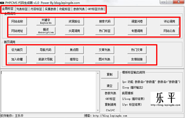 phpcms代码生成器使用款专用的phpcms模版编译工具,用户使用PHPCMS代码生成器可快速的生成PhpCMS V9模板代码,方便调用,让您在制作PhpCMS V9模板时得心应手,PhpCMS V9爱好者必备!