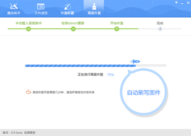 强大的恢复模式,固件更新、路由恢复、系统升级、自动uboot刷机,自动配置网卡信息,一键完成轻松搞定