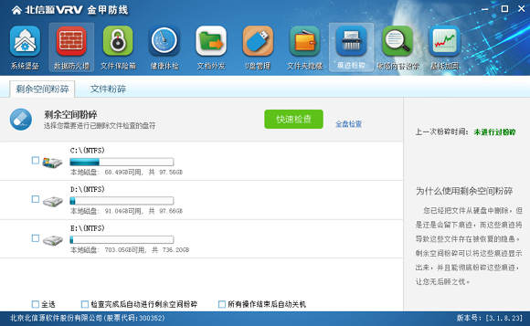 .通过痕迹粉碎保证您硬盘上已删除的数据不可恢复,防止他人恶意恢复,防止隐私泄露。