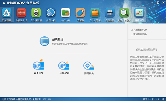 北信源金甲防线以数据防护和系统防护为核心目的,通过数据防护、数据防火墙、系统堡垒、主动防御、系统安全基线、补丁支撑体系等多道防线,喜欢的赶紧来下载使用吧。