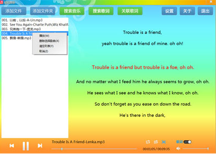 直观的歌曲控制栏,简易的菜单功能栏,一目了然