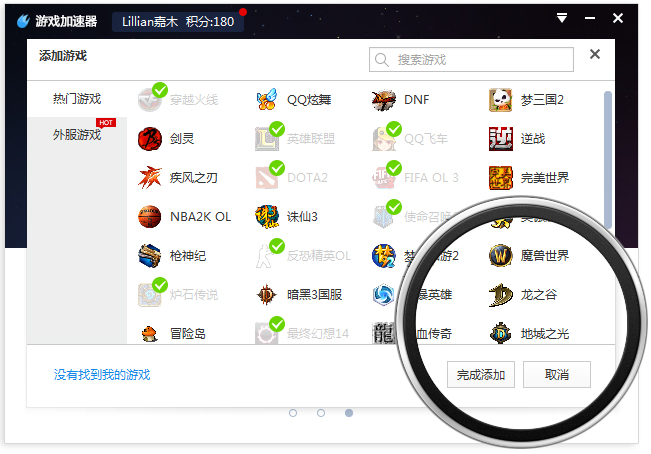 1、启动桌面百度游戏后,添加需要进行游戏(图示打钩的为已添加的游戏)