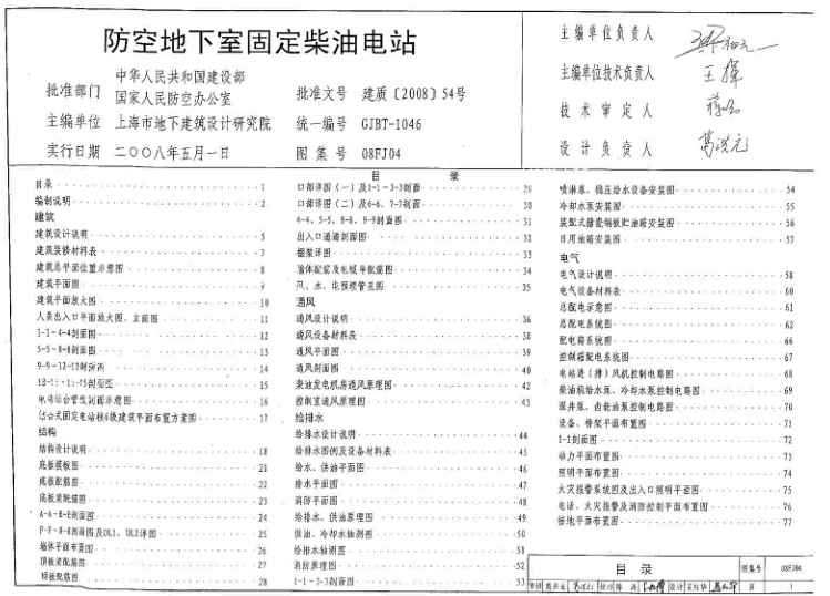 08FJ04防空地下室固定柴油电站图集简称为08fj04图集,该图集适用于新建、扩建、改建的防空地下室配套设置的单建独立式电站。本节内容小编为大家精选带来的这份08fj04图集为pdf格式高清扫描版,如果你需要这份图集的话点击本文相应的下载地址进行下载即可!