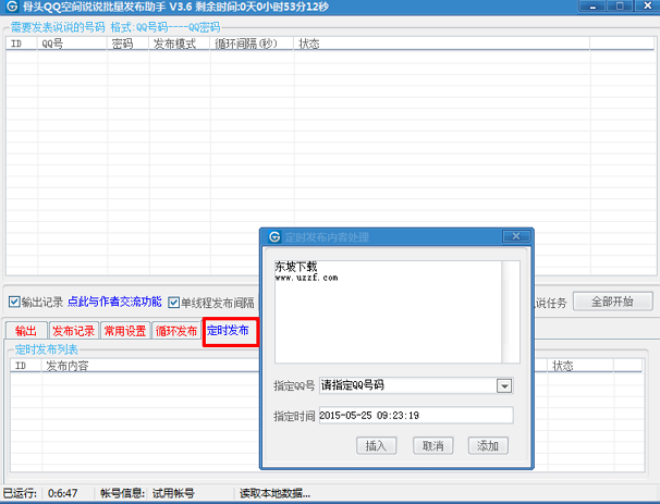 2.支持批量QQ定时说说发布:指定时间软件到时间自动发布,非QQ空间的定时发布功能