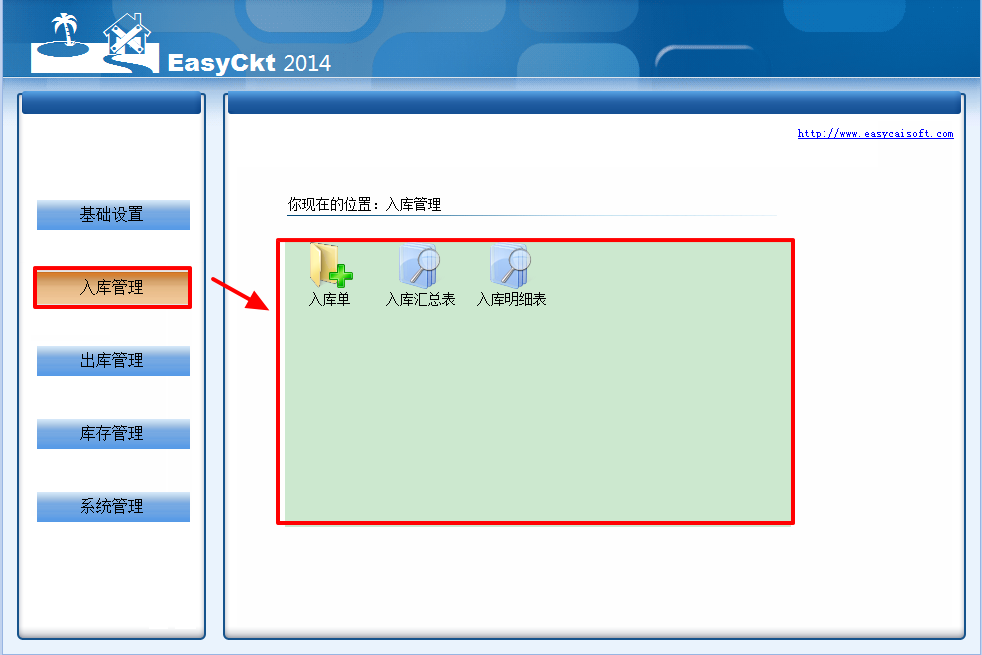 2、入库管理:包括入库单,入库汇总表,入库明细表。