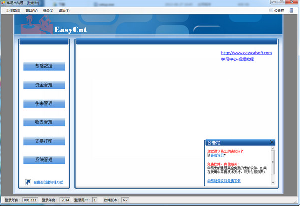 华易出纳通集资金管理、往来管理、收支管理和支票打印四项功能。它具有操作简单、功能强大、使用灵活、高度智能等诸多优点,它适合企事业单位的出纳人员使用,也适合个体工商户对资金账、往来账、收支账进行有效管理。