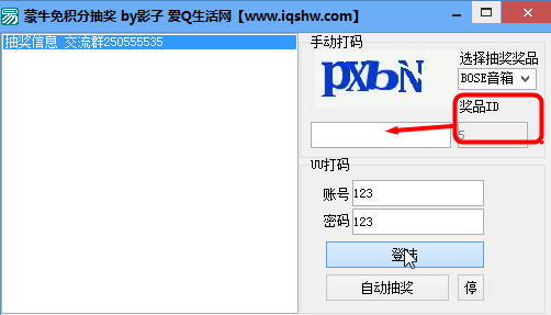 3、输入奖品的id与验证码,就能够快速获得抽奖机会