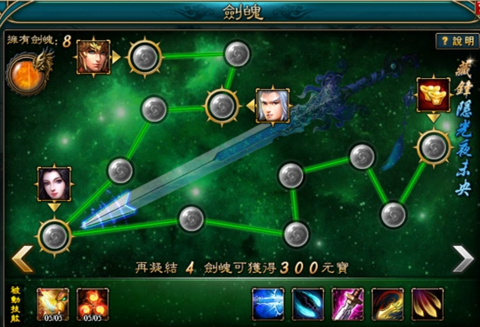 “藏锋隐光夜未央。”新的剑魄阶段已经开启,九劫剑的“藏锋”阶段,将为你带来战力的超强提升,会打开新的玉石商店九重天阙,还能解锁招募雪仙子哦,雪仙子可是一名极强的辅助型豪侠,让你有了雪仙子,妈妈再也不用担心你的学习会挂科了。
