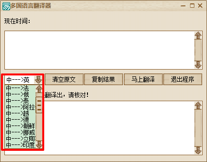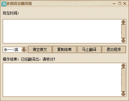 多国语言翻译工具是一款绿色免安装、简单易用的翻译工具,它能够实现多国语言的互相翻译,您还可以直接点击复制翻译结果。