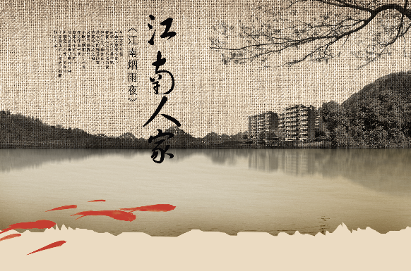 尽管该素材中的房屋建筑看上去比较摩登,但这份素材看上去依旧比较具备中国风,毕竟有水墨字样,毕竟有红色锦鲤,毕竟有“江南人家”这样的字样渲染——也正因为如此,这份素材也可以算是一份古香城色江南水乡墨迹素材了,以下是该素材的图样,有需要的朋友可以点击本文相应的下载地址进行下载查阅使用!