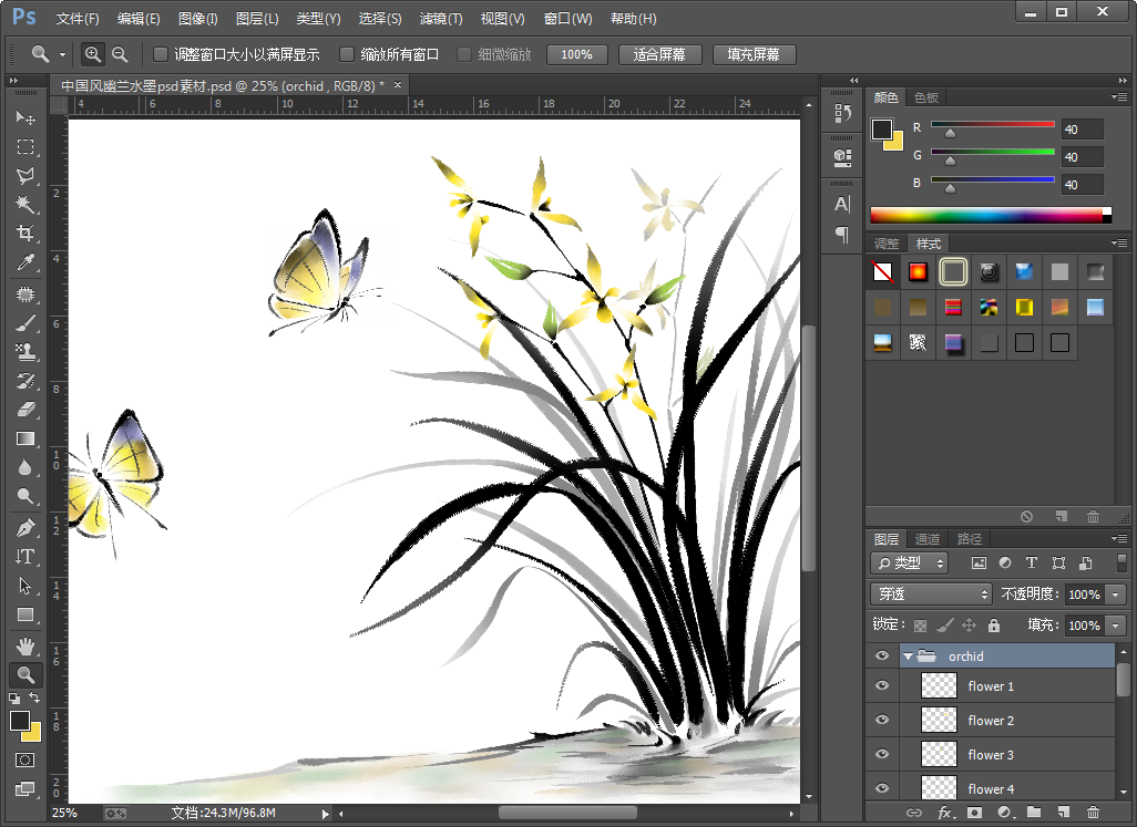 水墨兰花是一种常见设计图案也是经常会用到的一种设计素材,本节内容小编为大家整理带来的是一份免费版兰花psd素材,也可以说是一份中国风幽兰水墨psd素材,如果你需要水墨兰花素材或是需要兰花psd素材,你只需点击本文相应的下载地址进行下载即可!该素材为免费素材,有需要的朋友可以放心下载使用!