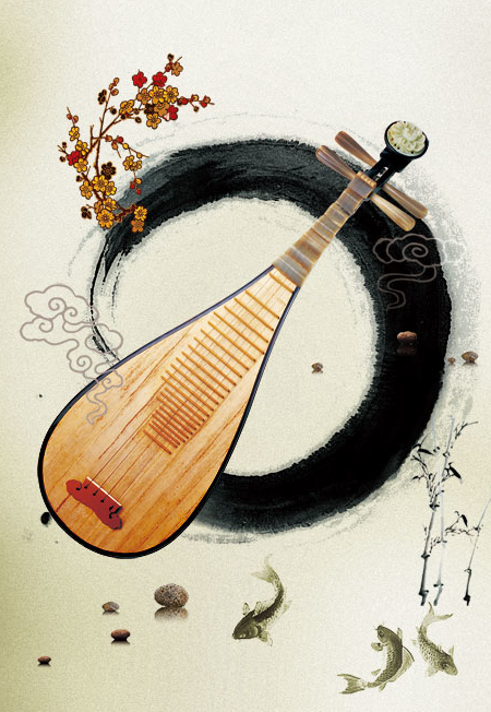 古典元素中国风水墨琵琶素材图样