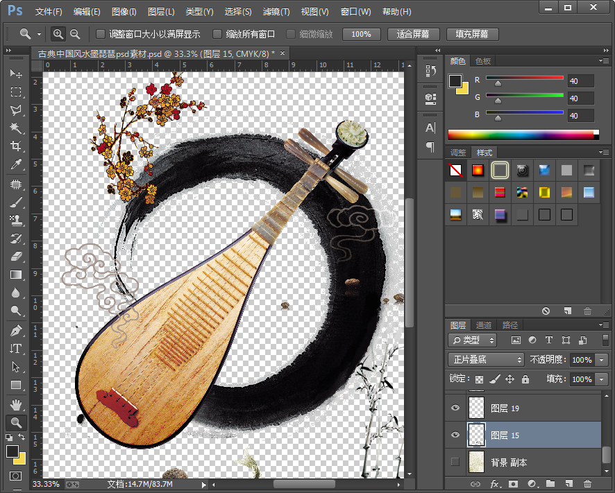 古典元素,中国风,水墨图纹,更重要的是还包含有一把琵琶——这便是这份素材的全部特点了,所以我们不妨称这份psd分层素材为古典元素中国风水墨琵琶素材吧!小编要为大家介绍的是该素材为免费版,有需要的朋友可以放心下载使用,另外,下面有该素材的图样,你可以斟酌之后再决定是否下载哦!