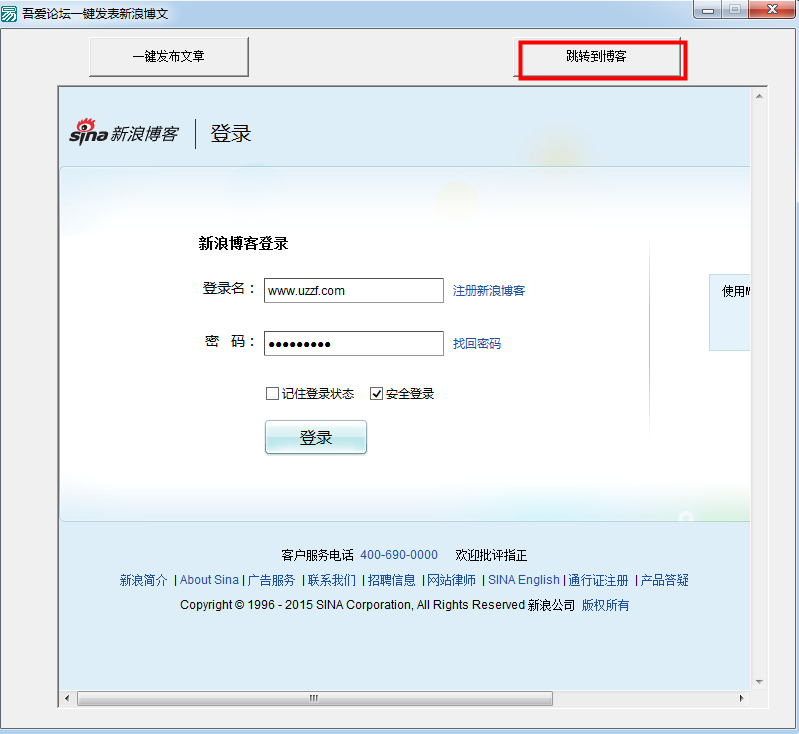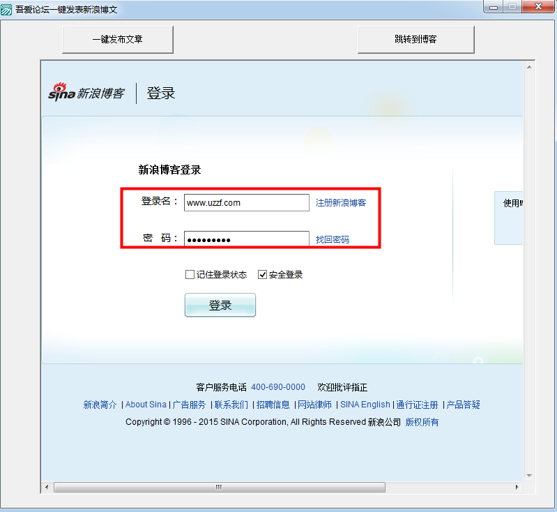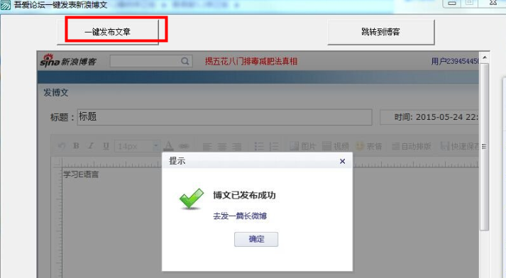 吾爱论坛一键发表新浪博文软件其实就是快速发布新浪博客的强大工具。用处只需要借助这个软件,就能够迅速的发布文章,而且还不需要登录微博客户端,为你节省大量的时间!