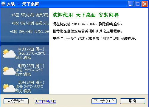 网吧桌面大师是一款免费的网吧桌面美化工具,可以为个人电脑及网吧电脑系统设置桌面壁纸,并自配天气预报、收费价格等信息