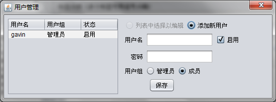 该界面下可以添加和修改用户的用户名,密码,组别,以及启用状态。只有启用的用户才可以登录软件。只有管理员组的用户才可以管理用户和用户下的信息。成员用户只能管理自己创建的信息。