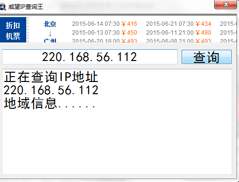 2,开始查询,输入完IP地址后,点查询或输入回车,软件开始查询,下面的文本框显示查询状态
