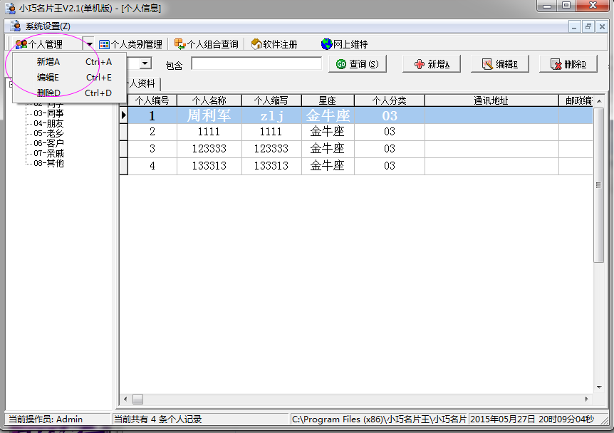 给有需要记录一些电子名片的朋友,电脑上推荐下面的这款不错的小巧名片王,来帮助你管理好你的名片,这款软件体积小而且使用也是非常的简单的!