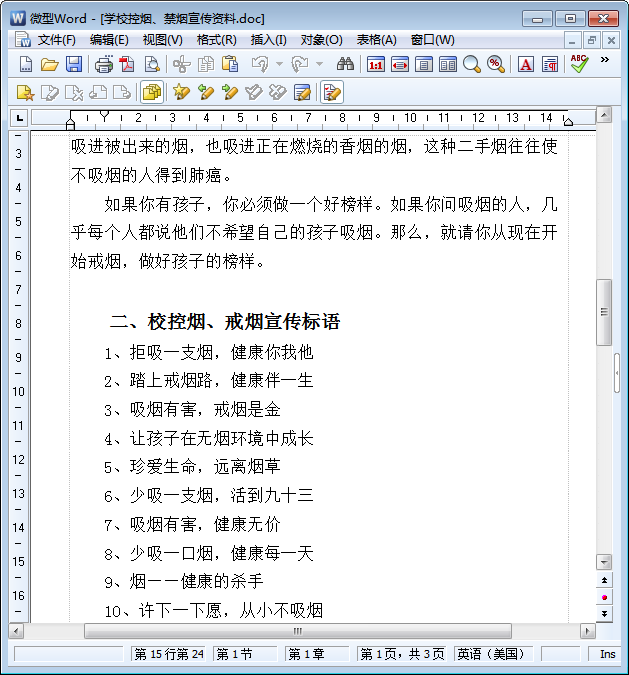 国际禁烟日就要到了,控烟禁烟宣传资料什么的自然是少不了的,本节内容小编为大家整理带来的便是一份与“国际禁烟日”有关资料——控烟禁烟宣传资料,如果在制作禁烟日手抄报的过程中你需要相关资料的话,那么不妨就来参考一下这份禁烟资料吧!该资料为doc格式免费版,有需要的朋友可以放心下载使用!