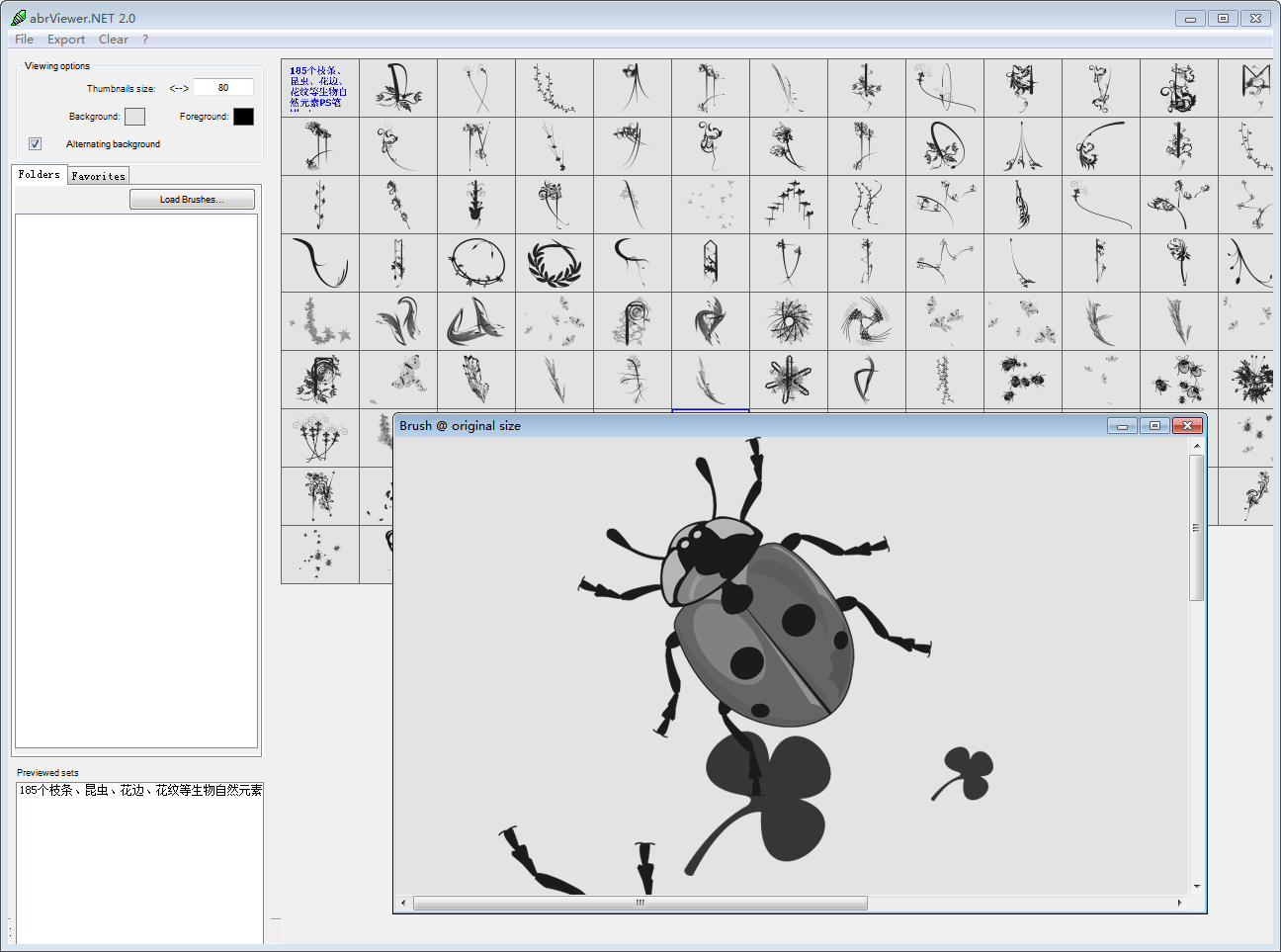 这是一份由185个Photoshop生物自然元素笔刷构成的素材,在这份笔刷素材中包含有枝条、昆虫、花边、花纹等笔刷样式,以下是该笔刷的相关内容截图,小编建议经常需要用到ps自然笔刷的朋友将这份素材进行下载收藏,该素材为免费版,有需要的朋友可以放心下载使用!