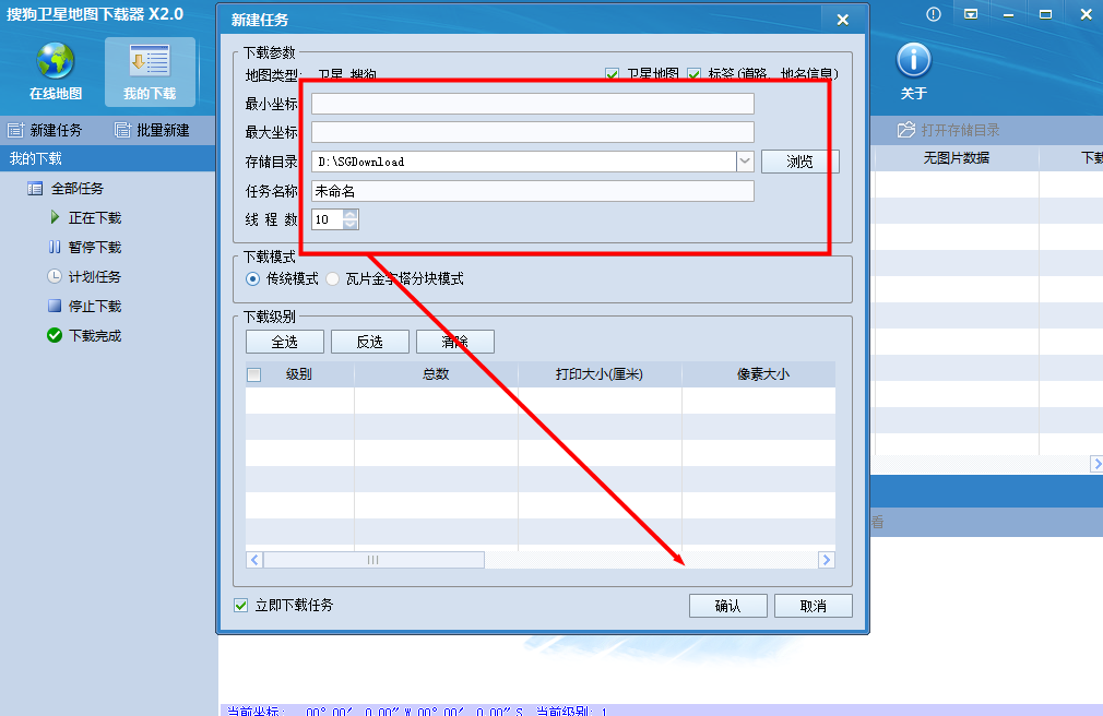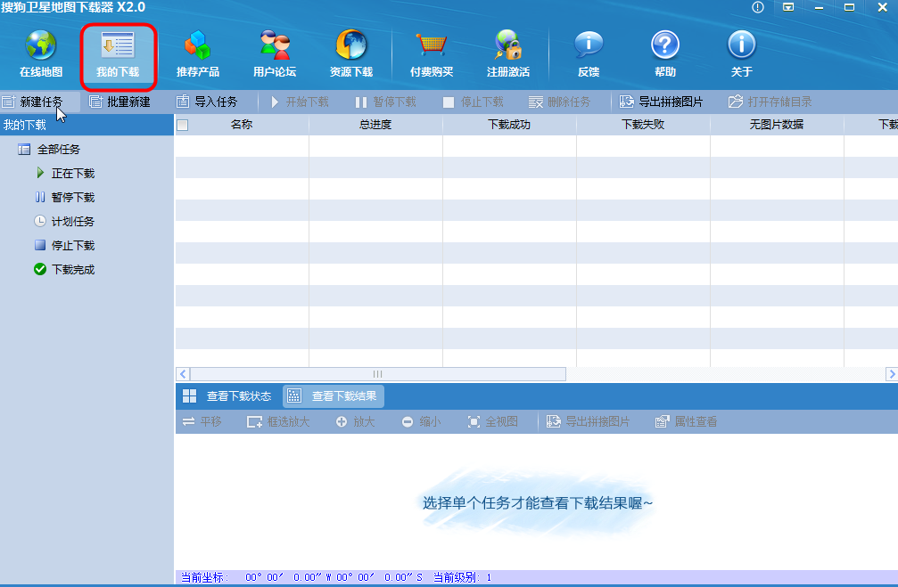 软件下载时,会记录所有图片的下载状态,如果下载失败时图片的对应点状态为红色,如下载无数据时,对应点状态为蓝色。当完成一轮下载后,会自动再次下载所有红色的失败点,并自动过滤无数据区,直到下载完整为止。