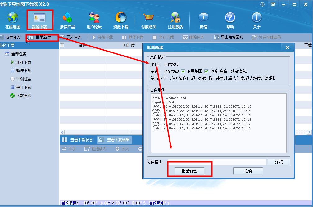如果是多个任务,就选择“批量新建”,选好位置就能够点击【批量新建】