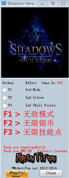 暗影异教王国三项修改器使用说明