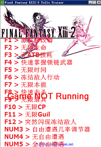 最终幻想13十四项修改器让你拥有无限生命、无限时间、冻结敌人行动、无限本能、等一些强大的功能喜欢的赶紧来下载使用吧。