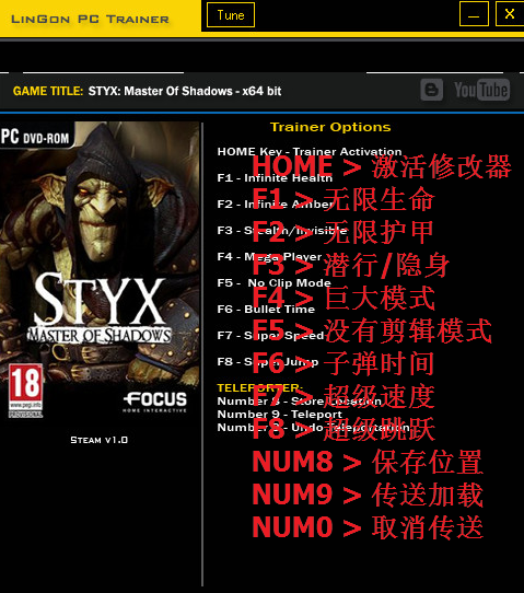 冥河暗影大师十项修改器让你在游戏里面拥有强大的功能无限护甲、潜行/隐身、超级速度等喜欢的赶紧来下载使用吧。