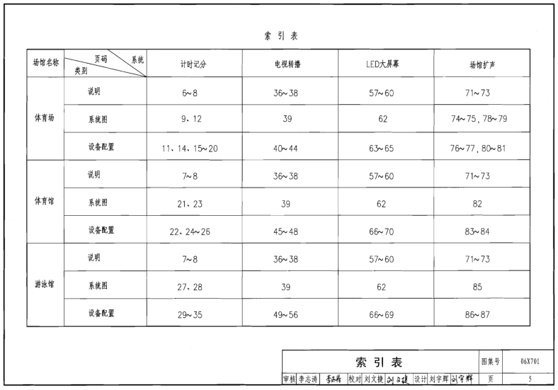 06X701体育建筑专用弱电系统设计安装图集,简称为06x701图集。