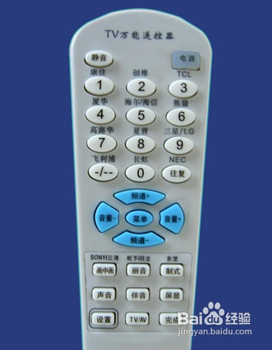 使用万能遥控器换台前,先要激活遥控器,一般万能遥控器上都有各主要品牌电视的按键,比如1键是长虹电视,2键是LG电视等等。根据你的电视品牌要长时间按住对应的数字按键,直到遥控器红色指示灯闪烁,说明万能遥控器已经激活了,就可以正常使用了。