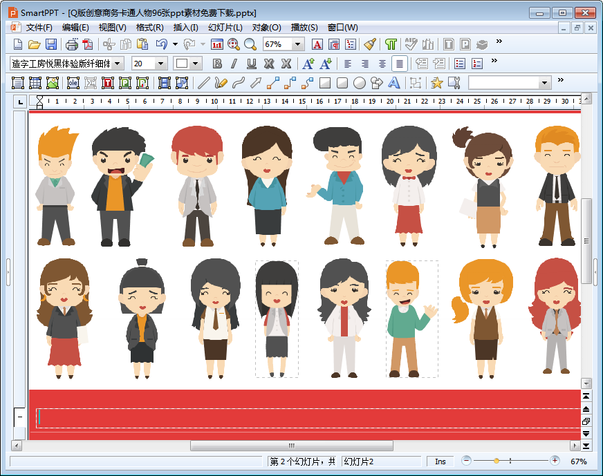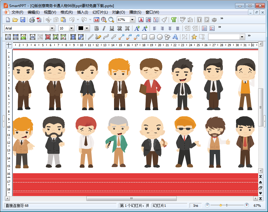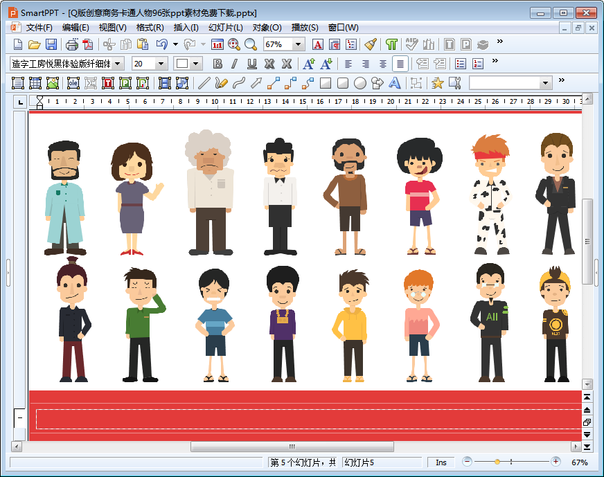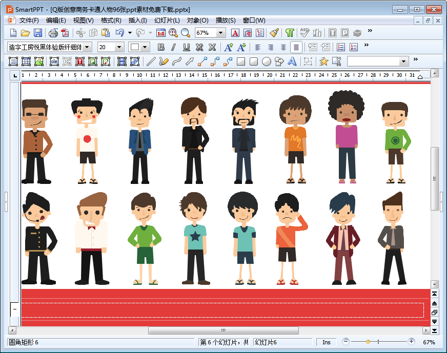 在制作商务ppt的时候,有时为了能让ppt看上去活泼一些或是生动一些,不少朋友会在其中加入一些Q版元素——比如Q版商务人物等。本节内容小编为大家整理带来的便是一份创意卡通Q版商务人物素材,该素材中含有96张摆着不同pose的q版人物——当然他们的表情也各不相同哦!下文有该ppt素材的图样,如果你需要这份免费版的q版人物ppt素材,只需点击本文相应的下载地址即可将它收入囊中哦!