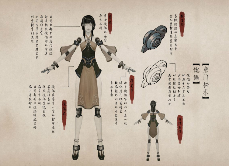 机关傀儡术是唐门的特有战斗机制,唐门的所有攻击性暗器招数都可以和傀儡进行合击,造成更多的伤害和控制。