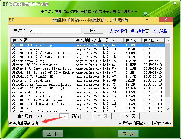 复制搜索出来的种子链接