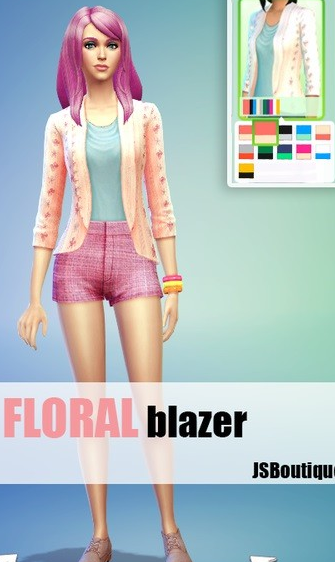 模拟人生4 女性复古碎花外套;修改游戏原设小西服外套的桃红与粉配色为这一款碎花外套,喜欢的玩家不妨替换试试。
