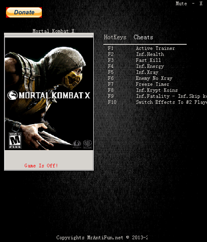 真人快打X九项修改器让你拥有一些强大的功能比如无限X射线、无限生命、无限Krpt点数、等强大的功能,还在等什么赶紧来下载使用吧。