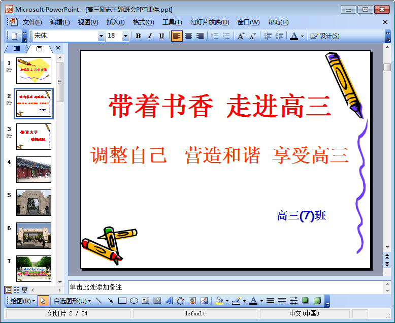 该高三励志主题班会PPT课件共有24页,ppt模板朴素简单,内容充实丰富,适合作为高二升高三,或者高三毕业班的学生查阅。如果你需要一份“高三励志ppt免费下载”文档,如果你需要一份高三励志主题班会PPT课件,那么不妨将这份文档下载下来看看吧!相信它不会让你失望的哦!走进高三,青春无悔!高三加油!