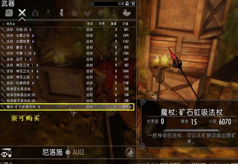 上古卷轴5:天际 魔法杖MOD,可以直接吸取龙裔DLC的魔冰岩矿.可以用法杖附魔器自行制作,也可以向尼洛施(泰尔瓦尼家族的老法师)购买.