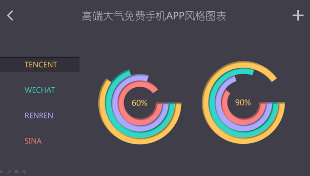 这里是一份仿手机APP风格图表ppt,幻灯片以灰色为背景,非常简洁,看起来高端大气,个性十足,有需要的点击下面的地址即可免费下载这份APP风格ppt图表素材。
