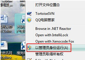 如果在win7中不能运行,请在桌面上《关联免费客户管理软件》点右键“以管理员身份运行”,如下图所示