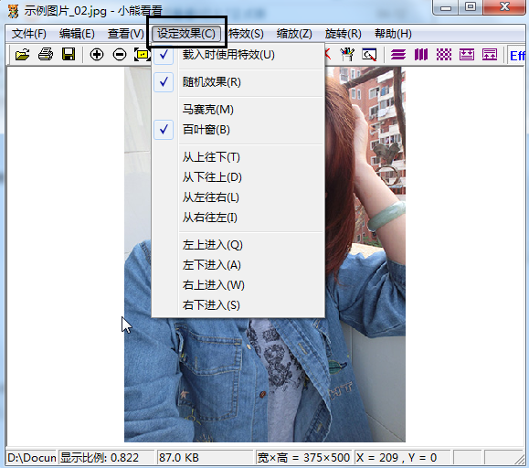 小熊看看支持查看多种图像格式的图片,如:BMP、PCX、TGA、JPEG、GIF等等;使用它的时候可以对图片进行编辑、缩放大小、旋转角度的操作;甚至还可以在浏览的时候添加一些效果,如:马塞克、百叶窗、从上往下、右下进入、随机效果等等。而且我们在查看图片的同时,还可以显示出图片的大小、宽高、显示比例、存储位置这些相关信息;同时软件还可以转换各种图片格式,真的是特别的方便。