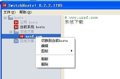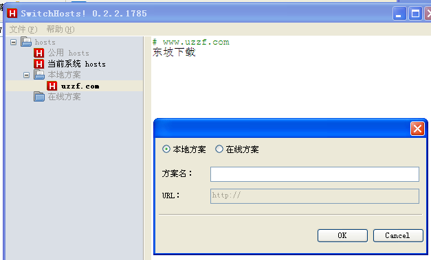 这是一个非常方便hosts方案切换的小工具,让你方便快速的打造个人专用的网络环境,支持本地和在线两种方式,并且支持导入导出。