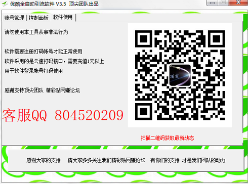 顶尖优酷全自动引流软件(优酷视频站自动引流)是一款利用大流量平台优酷视频站进行引流量,经过一段时间的测试,流量涨的非常的快,要推广的赶紧来下载使用吧。