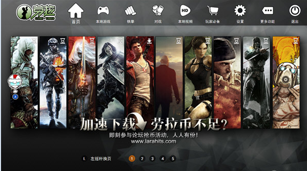 劳拉游戏系统是一款横跨PC端和TV端的游戏娱乐平台,让用户以极低的成本,方便的步骤即可构建一套强大的客厅娱乐中心,带来无与伦比的大屏精彩游戏体验!