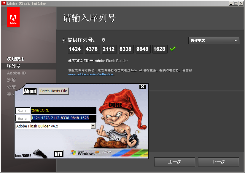 先下载安装flex builder 4.7,安装完成后,使用注册机注册激活Adobe Flex Builder 4.7 即可