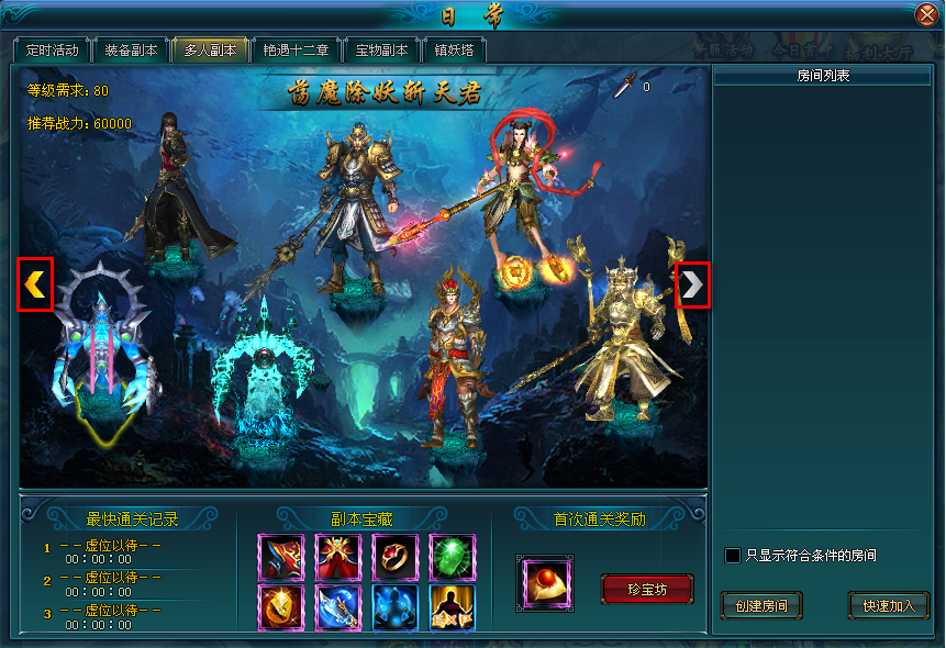 在选定房间后右侧显示的是队伍信息,最多可以5人一起来通关副本。