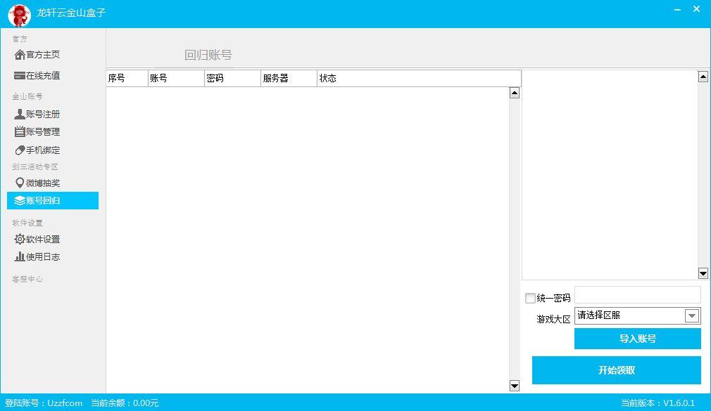 龙轩金山账号注册机功能介绍