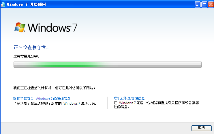 Windows 7 升级顾问扫描您的 PC 中是否存在潜在的兼容性问题,并让您了解您的 Windows 7 升级选项。在数分钟内,您将得到一个报告,告知您 PC 是否满足系统要求,在您的硬件、设备和已安装的程序中是否发现任何已知的兼容性问题,并提供关于在您的 PC 上安装 Windows 7 之前应该完成的事项的指导。