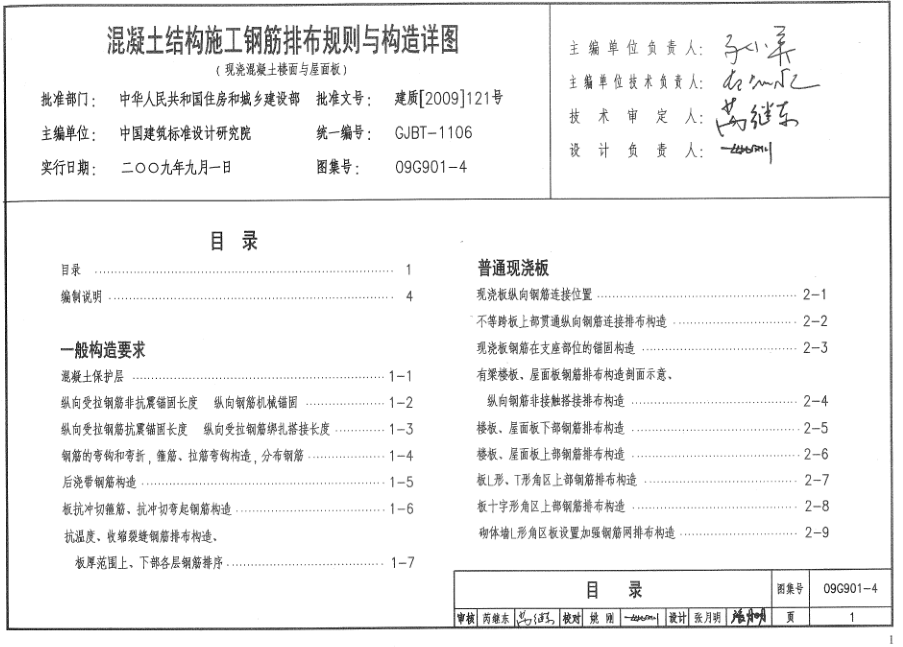 09G901-4混凝土结构施工钢筋排布规则与构造详图(现浇混凝土)目录